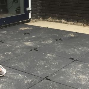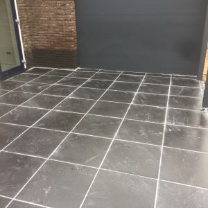 Het terras hebben we bestraat met een mooie gecoate 60x60 tegel en gevoegd met een epoxyvoeg voor een strak eindresultaat.