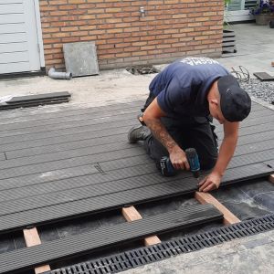 Met trots zijn wij door deze klant wederom benaderd om hun achtertuin verder op te knappen. Deze keer mochten wij een vlonder met composiet planken aanleggen.