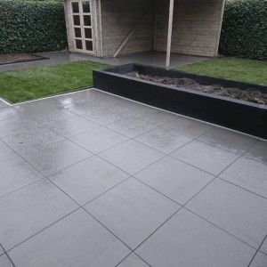 Hier hebben we de complete tuin aangepakt. Naast het straatwerk welke is gelegd met een mooie voeg, hebben we hier ook een tuinhuis geplaatst.